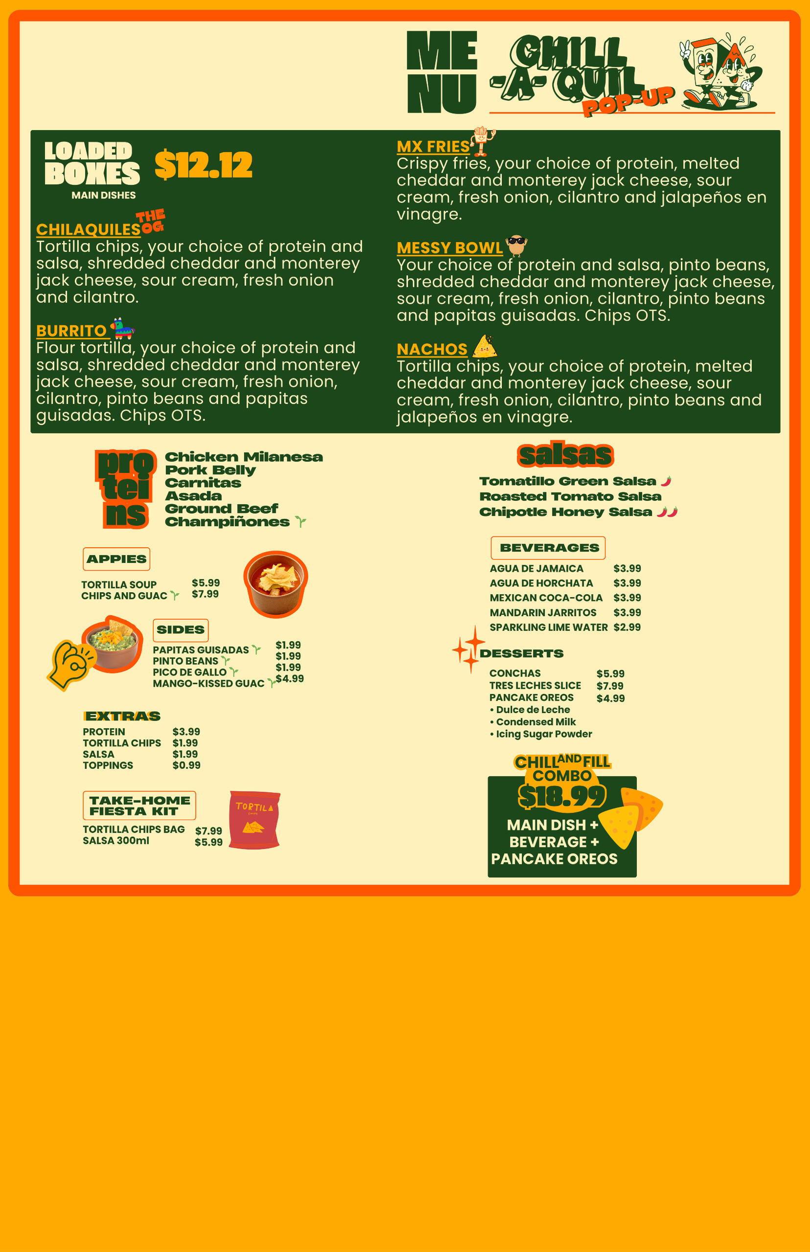 ¡Hola Vancouver!At Chill-a-Quil, we bring you those real antojito vibes — the bold, comforting Mexican flavours you’ve been craving.We’re inspired by la sobremesa, that magical moment Mexicans know how to do just right — long chats, great food, and zero rush. So in the middle of Vancouver’s busy rhythm, just chill and enjoy like it’s your casa.We believe in fusion, comfort, and culture, creating new flavors rooted in tradition.